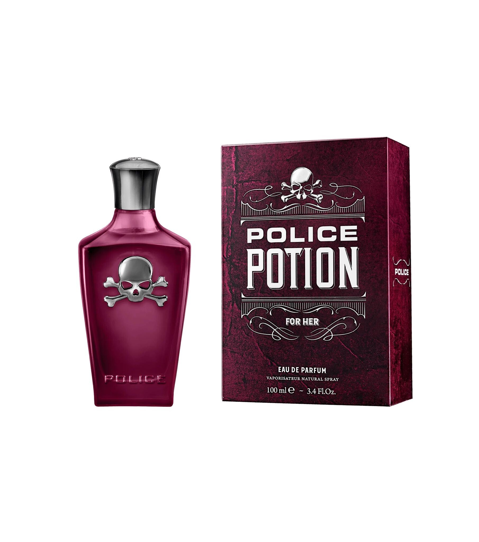 Police Potion For Her, se caracteriza por ser un elixir sensual que envuelve como un abrazo intenso, seduciendo con sus notas cálidas y prohibidas. Es una fragancia que fusiona la frescura de las frutas con notas florales y un fondo dulce y cremoso.